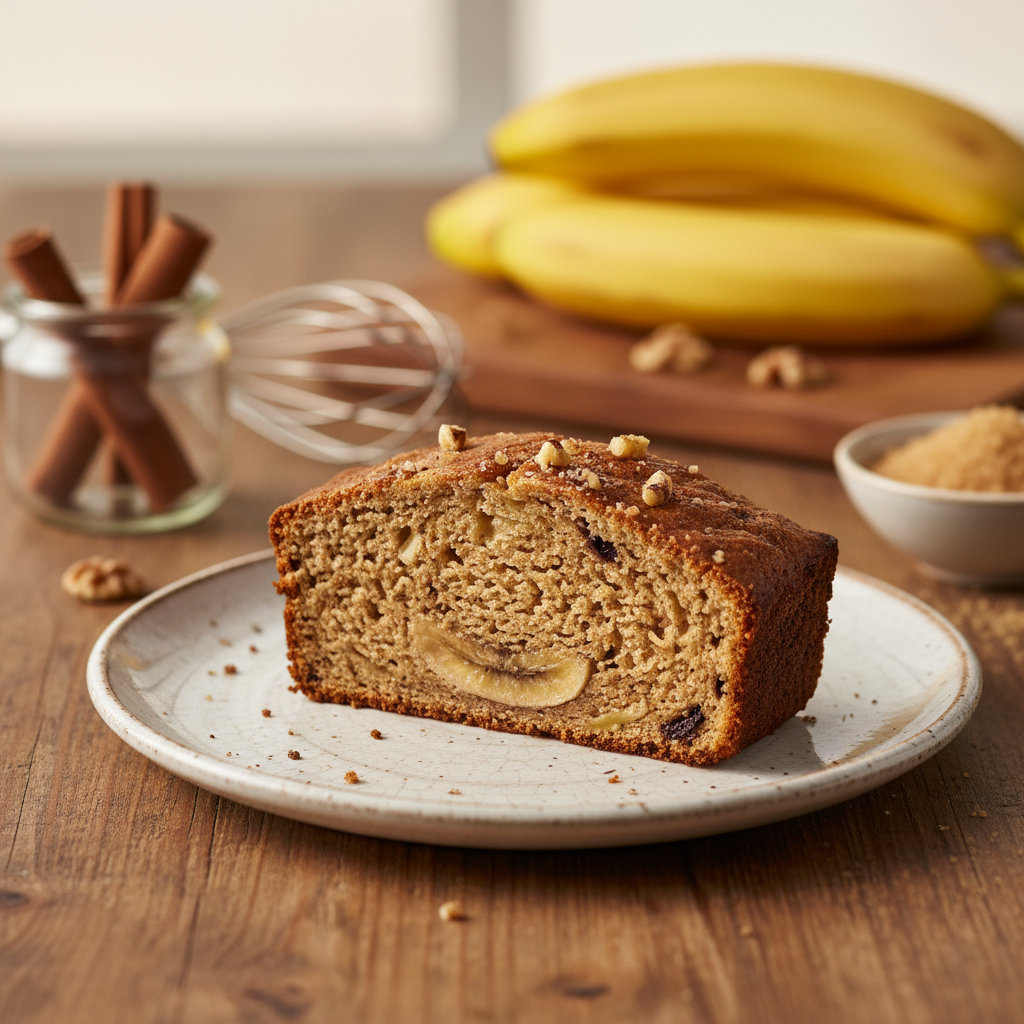 Bananų pyragas universaliai tinka tiek rytiniam kavos puodeliui, tiek vakarui su šeima. Jis puikus šiltas, ką tik ištrauktas iš orkaitės, tačiau lygiai taip pat gardus ir kitą dieną. Patiekite su plakta grietinėle, šviežiais vaisiais arba tiesiog vieną gabalėlį – jis pats savaime yra išskirtinio skonio desertas.