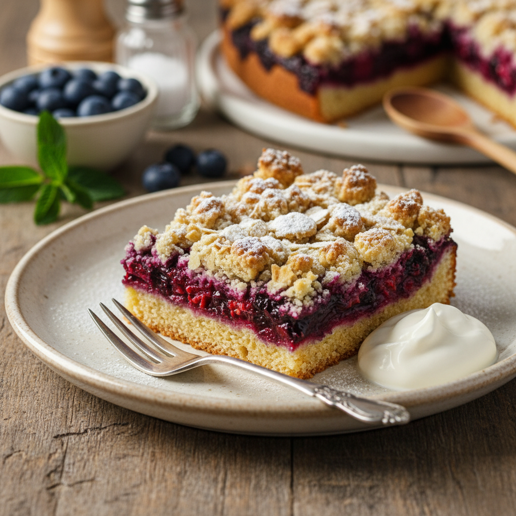 Tobulai iškeptas trupininis pyragas gali būti patiekiamas daugybe būdų.